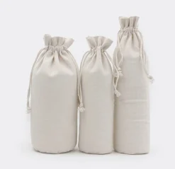 Gift Canvas Organic Bottom Round Wine Bottle Drawstring Cotton with Wine Bag Bag