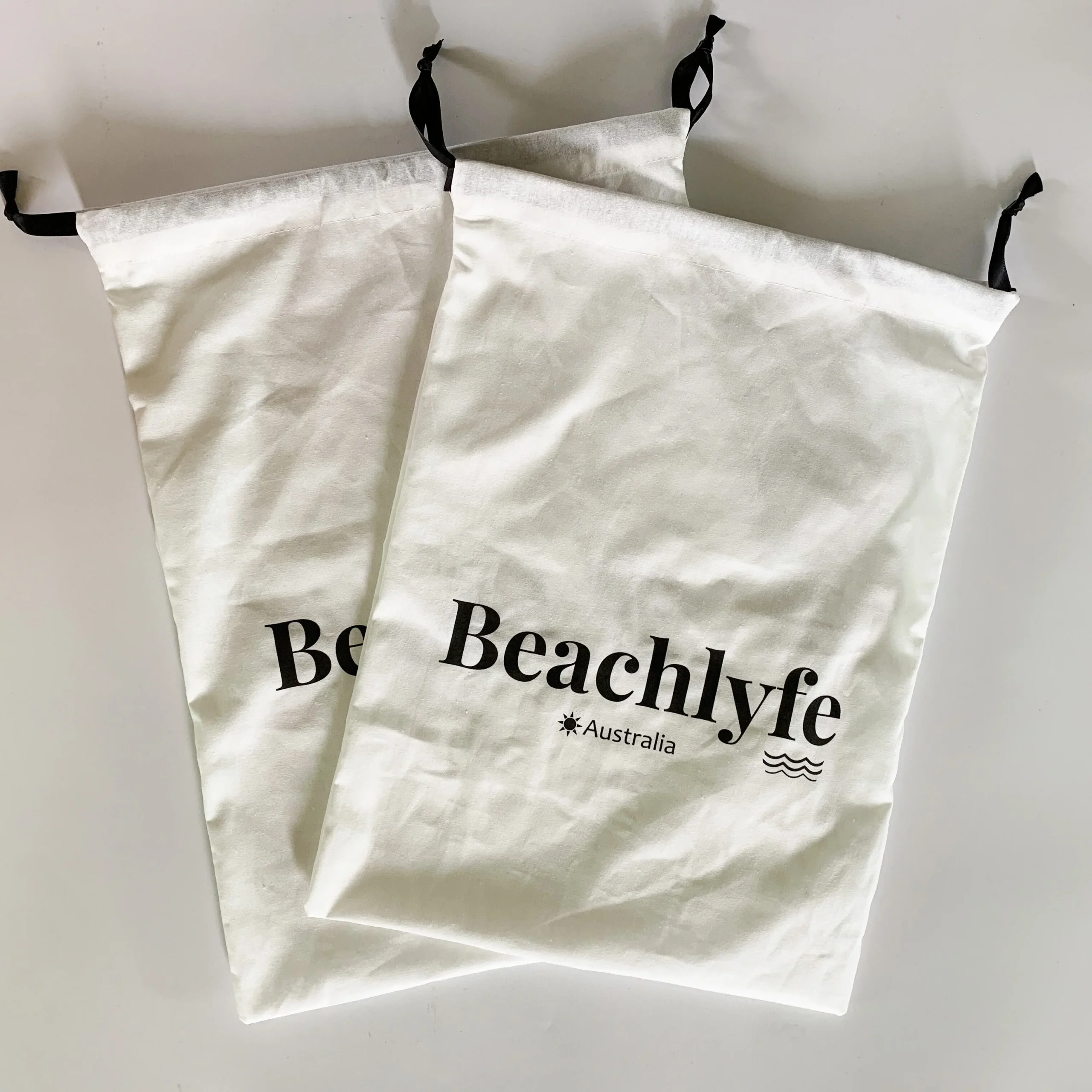 Promotional Muslin White with Cotton Strings logo Draw Calico Bag