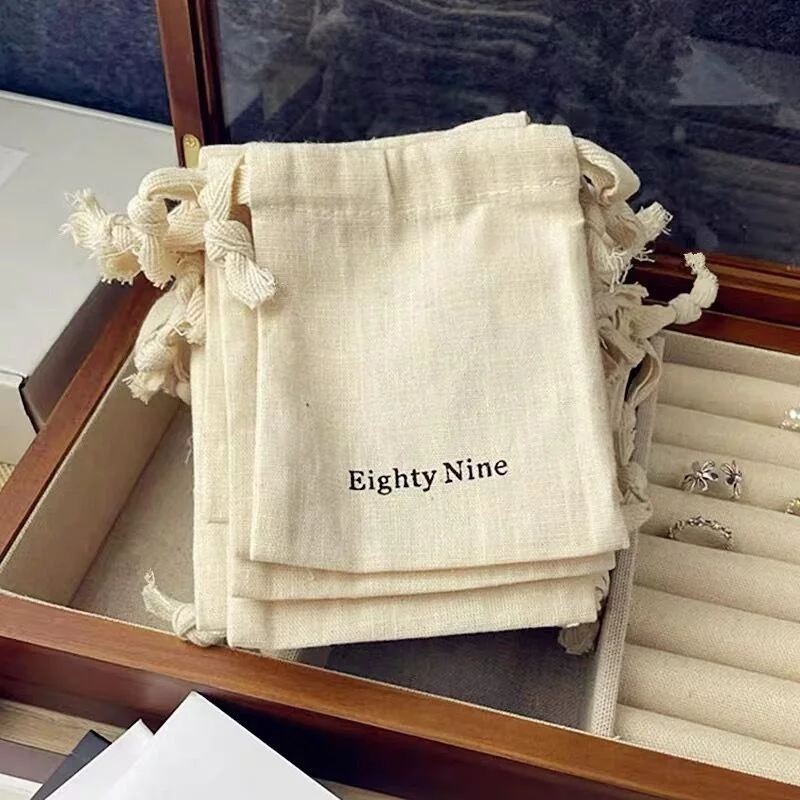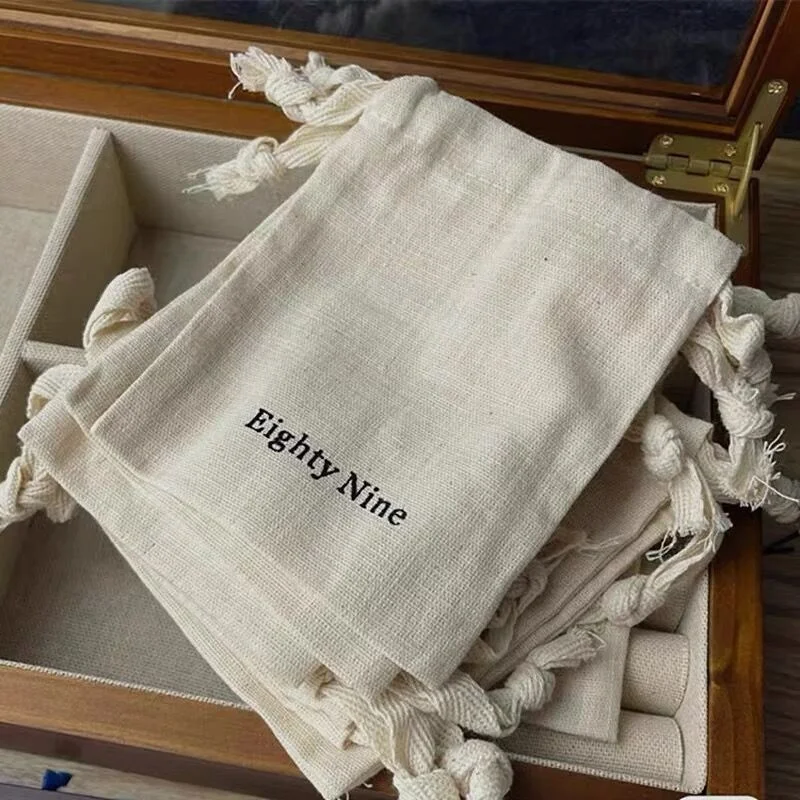 Small Candies Cotton Package Jute Bag Jewelry Drawstring Hemp Canvas
